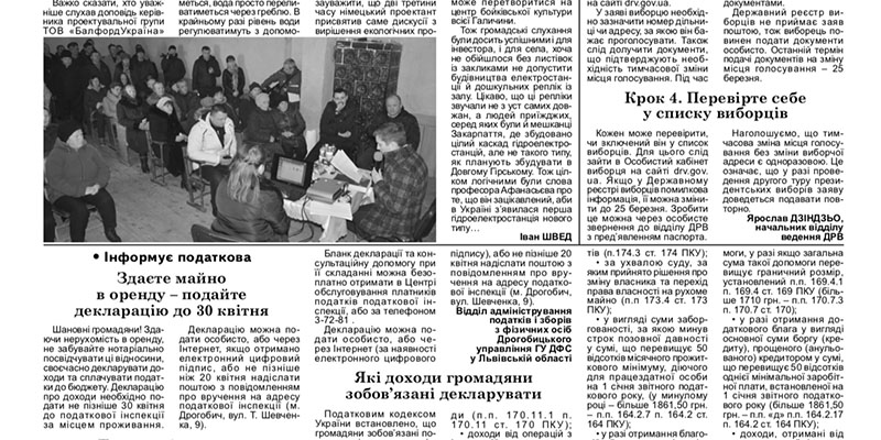 Читати більше12 березня 2019 в селі Довгому Гірському, що на Дрогобиччині, відбулися громадські слухання щодо впливу на довкілля будівництва гідро-електростанції